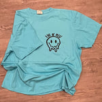 This stylish and comfortable Bit of Mess Tee is printed on a blue lagoon comfort color tee, featuring the "I am a bit of a mess" graphic. Show off your unique style and express yourself with this classic graphic tee.