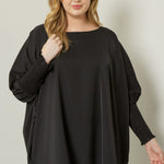 Elevate your style with our Black Boatneck Top! This round neck long sleeve top features smocked cuffs for a touch of elegance. The keyhole button closure at the back neck adds a unique detail. Unlined and lightweight, this top is perfect for any occasion. Experience non-sheer comfort and style in one!