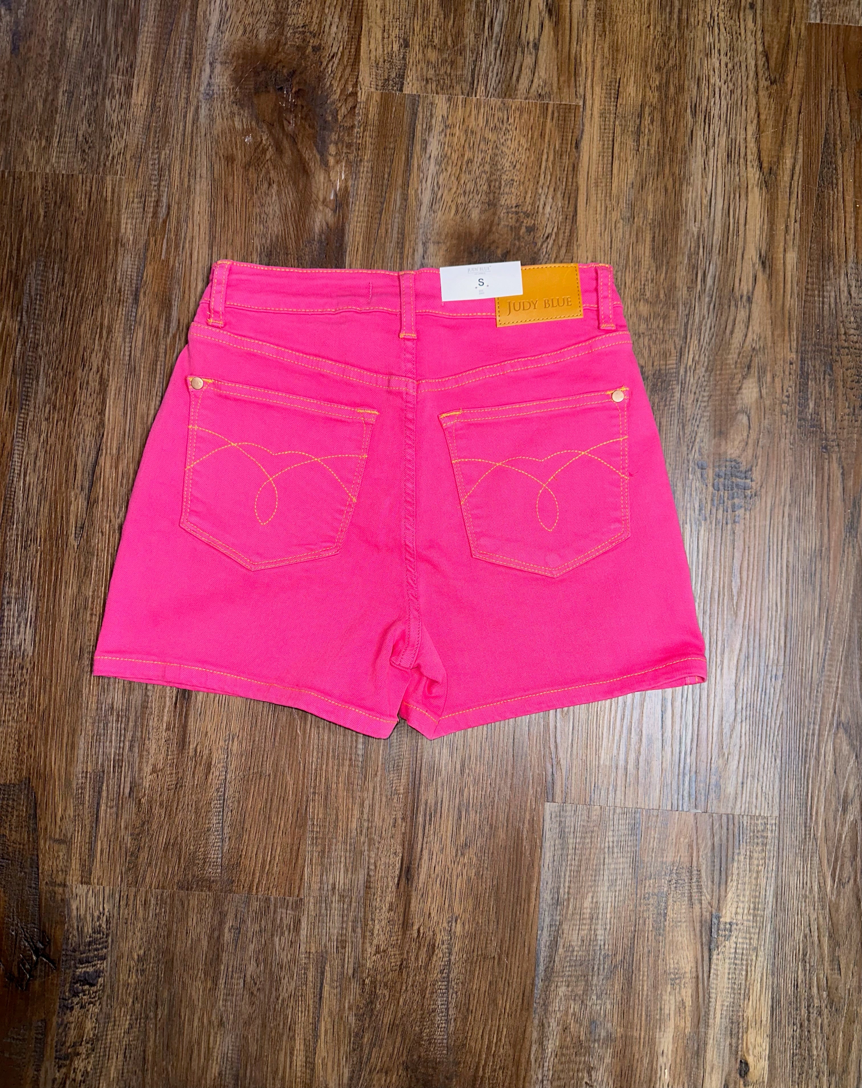 Introducing Judy Blue "Blossom Bliss" Garment Dyed Shorts – Embrace the vibrant energy of spring with these pink high-rise shorts featuring a flattering 4" inseam.