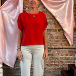 Introducing our Red Boat Neck Short-Sleeve Top, perfect for any occasion! Featuring a wide crew neck and casual drop shoulder, this blouse is made from high-quality fabric for all-day comfort. With a high and low hem and summer loose fit, you can dress it up or down. Get ready for compliments!