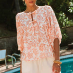 Boho Printed Blouse: Peach Wave