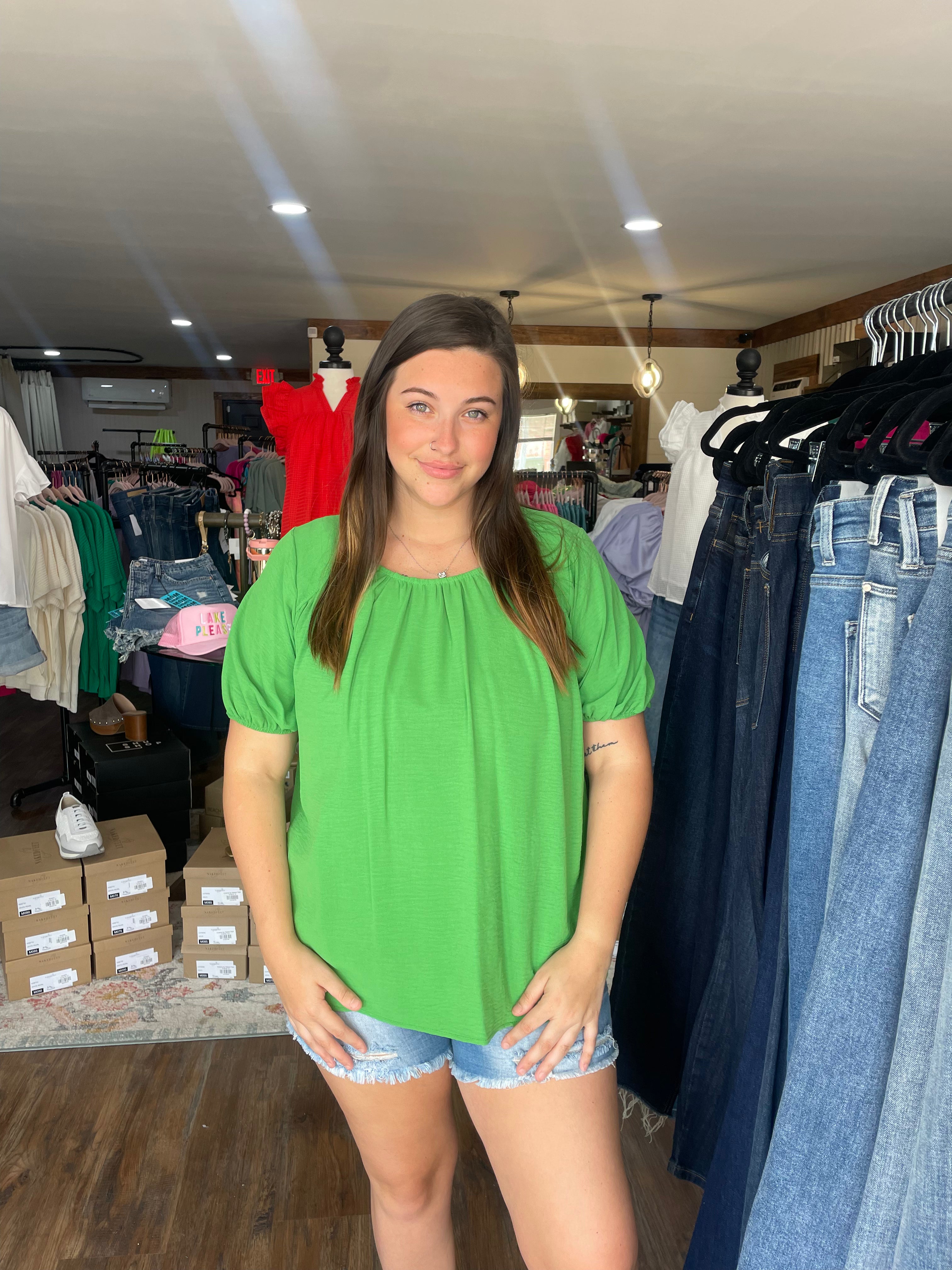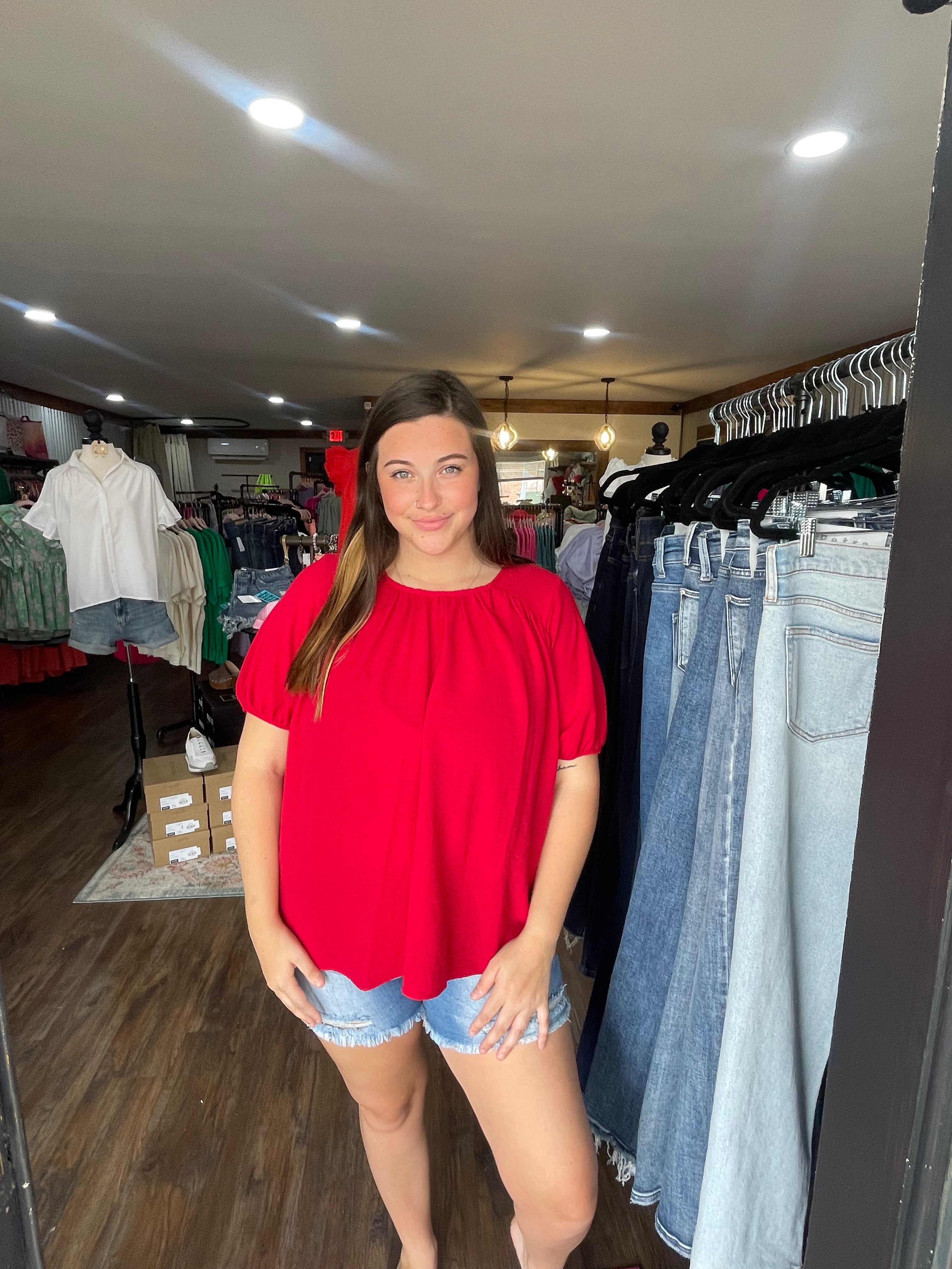 Available in two vibrant colors, Green and Red, and sizes Small to Large, the "Breezy Vibes" top is versatile enough to dress up or down for any occasion. Embrace laid-back sophistication and effortless style with this must-have addition to your closet! ๐๐