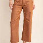 Introducing our Ankle Cropped Pants! Made with a stretchy denim-like fabric, these summer pants provide the perfect combination of comfort and style. Featuring pockets for convenience, these pants are available in sizes Small to Large with a fabric content of 65% Cotton, 32% Polyester, and 3% Spandex. Stay cool and chic in these versatile pants!