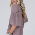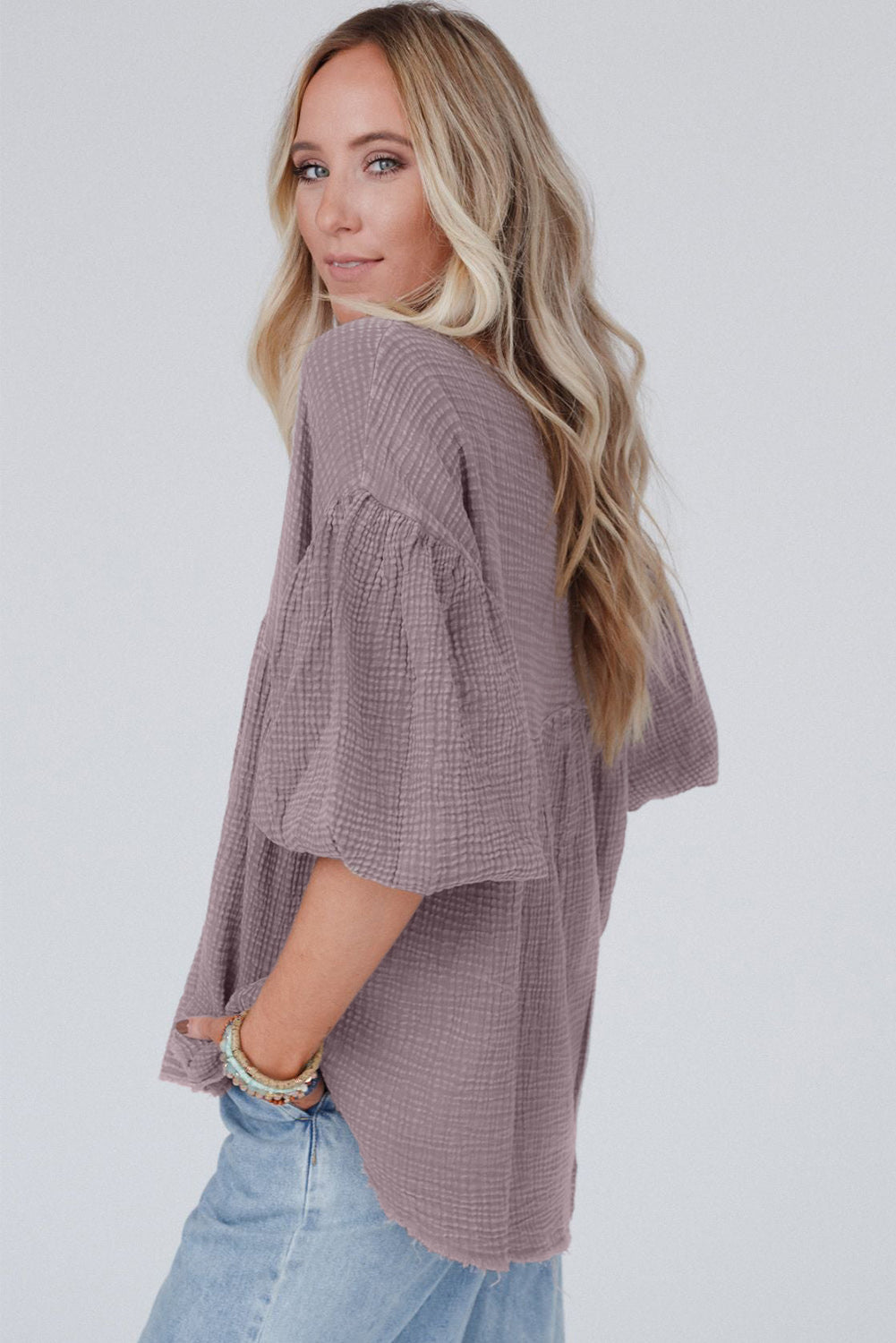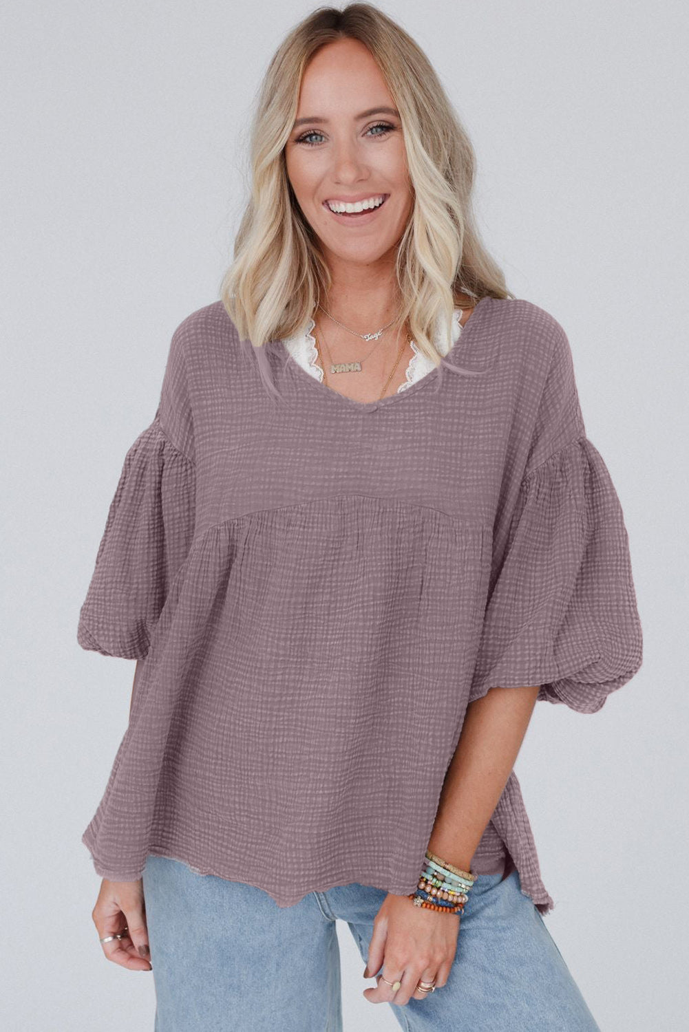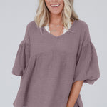 The Bubble Bliss Top is the perfect blend of comfort and style. Crafted from textured fabric, the bubble sleeves give it a unique look that catches the eye. Move in confidence and comfort knowing this top will last.