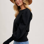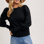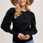 The bubble-sleeved sweater knit top is a cozy yet stylish addition to your wardrobe. With its unique design featuring voluminous bubble sleeves, this top adds a touch of drama and flair to any outfit. Crafted from soft and warm sweater knit fabric, it offers both comfort and chicness. The bubble sleeves create a statement silhouette, drawing attention to the arms and shoulders. Its versatile style allows it to be dressed up or down, making it suitable for various occasions. Pair it with high-waisted jeans for a casual daytime look or with a skirt and heels for a more polished ensemble. Whether you're running errands or meeting friends for brunch, this sweater knit top is sure to keep you looking trendy and feeling comfortable.