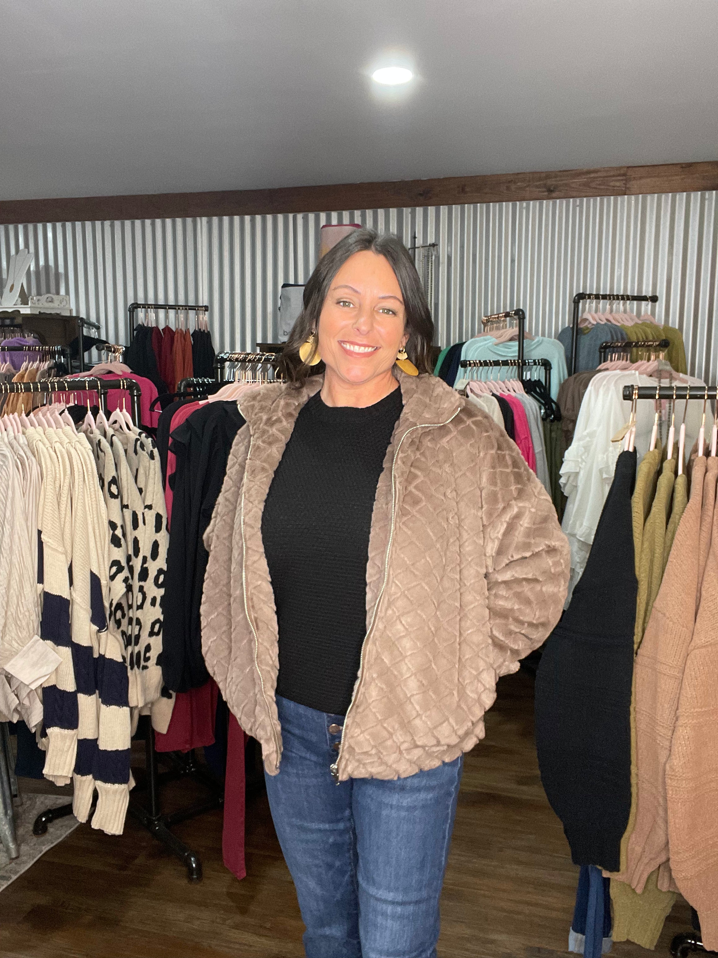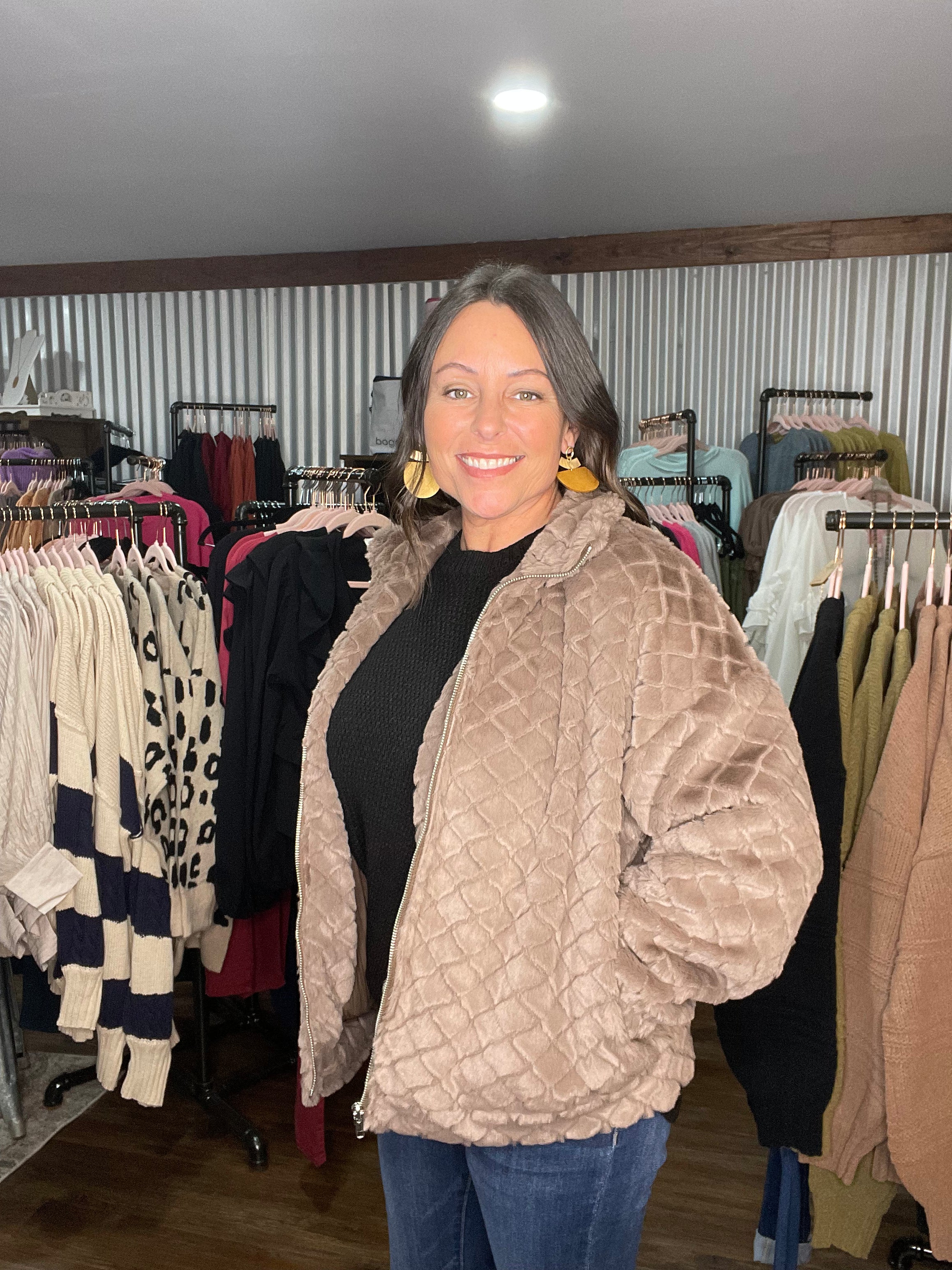 Chic Comfort Faux Fur Zip-Up Jacket (Brown)