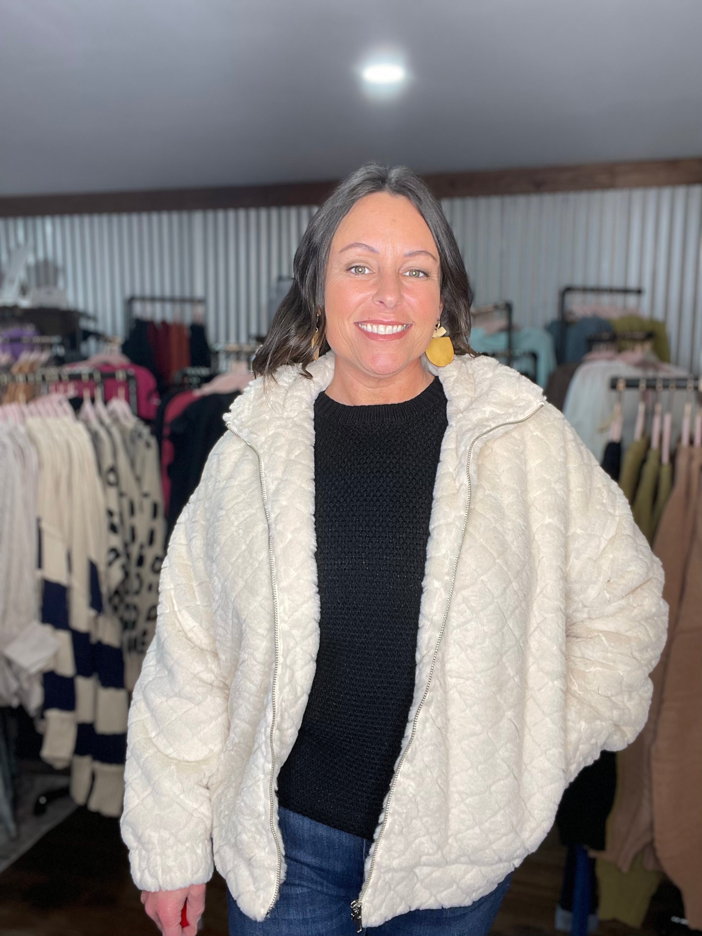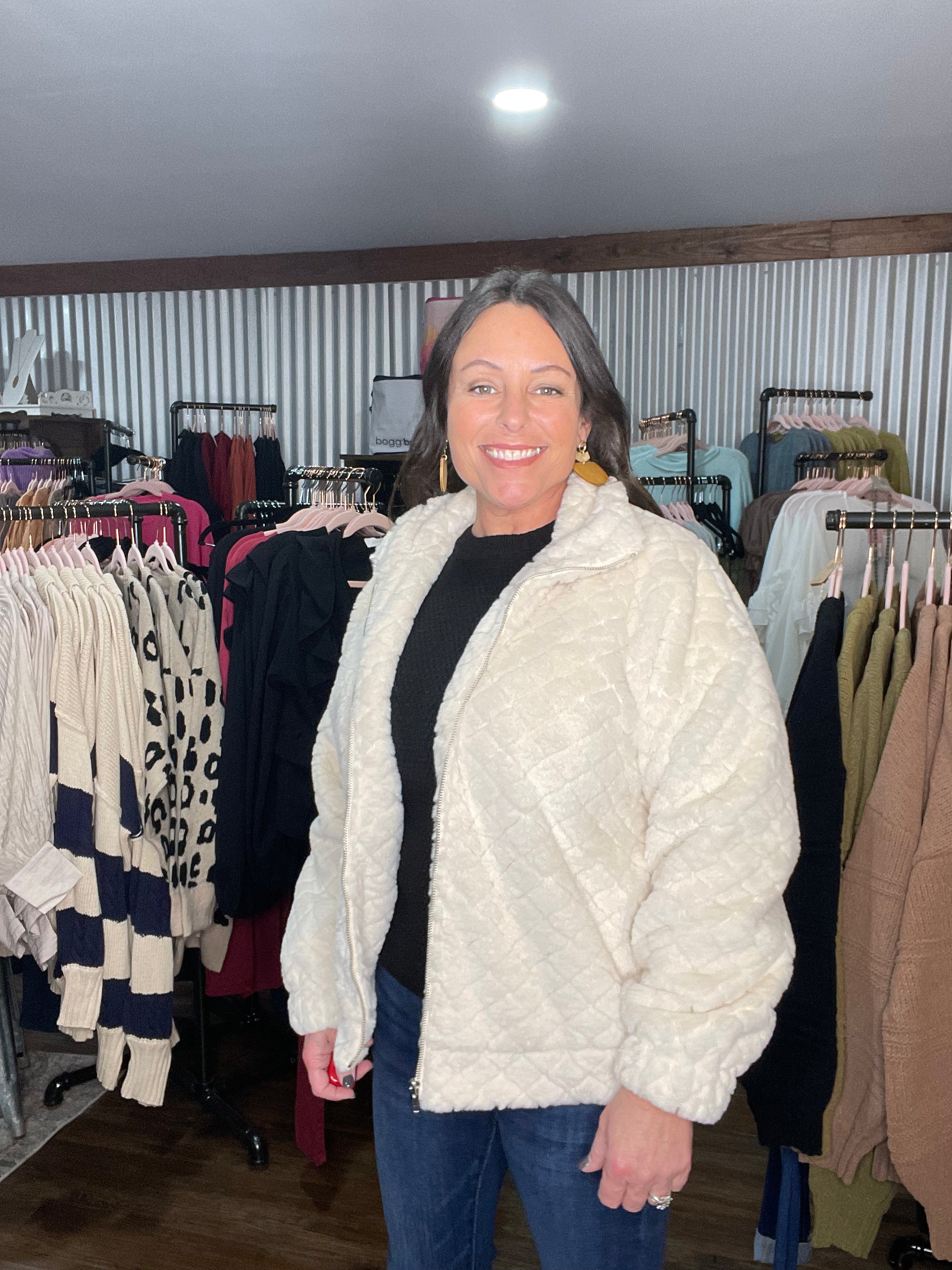 Chic Comfort Faux Fur Zip-Up Jacket (Cream)