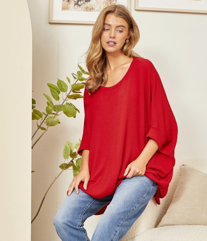 Elevate your wardrobe with our Curvy Chic Comfort Top! Made with soft curly rib and a poncho-shaped body, this knit top offers both comfort and style. Its relaxed fit allows for effortless movement and a laid-back look. Stretchy and non-sheer, it's a must-have for any fashion-forward individual.