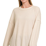 Introducing our new Exposed Seam Dropped Shoulder Sweater, featuring a brushed ribbed design and a trendy hi-low hem. With side slits and exposed seams, this sweater offers a unique and stylish look. Experience ultimate comfort and versatility with this must-have addition to your wardrobe! *Color may slightly vary due to monitor resolution.