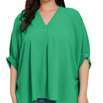 Curvy Kelly Green V-neck Puff Half Sleeve