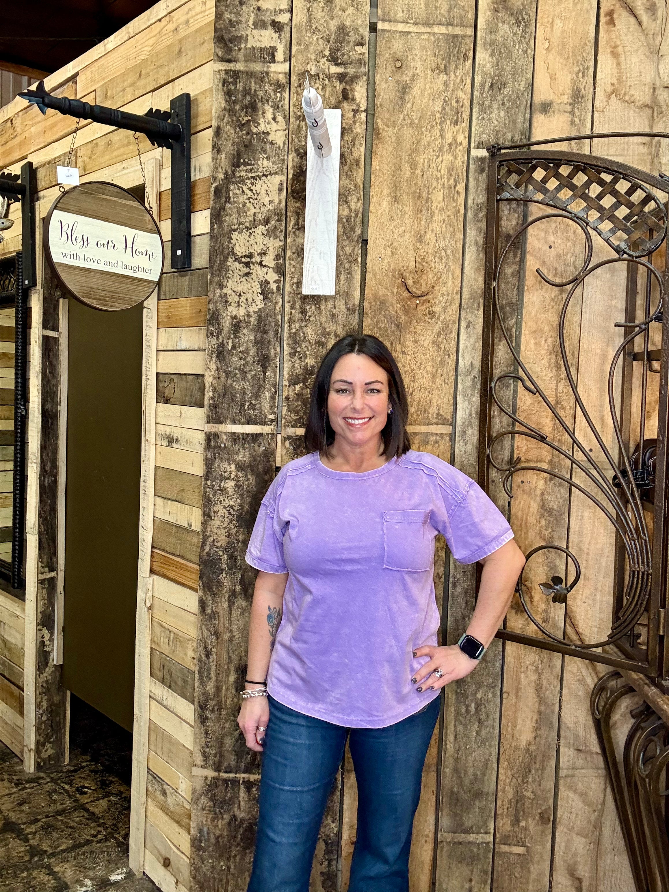 Curvy Lavender Acid Wash Round Neck Tee