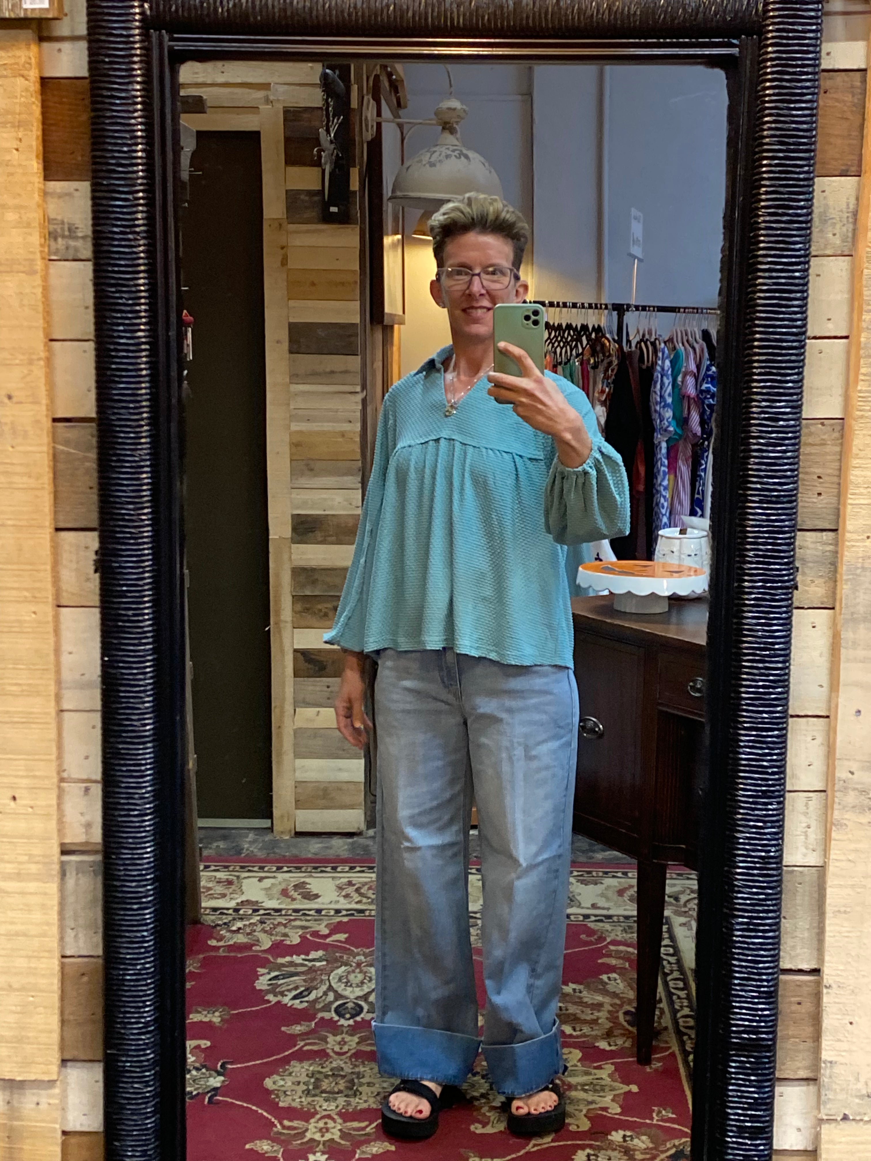 Curvy Seafoam Jacquard Knit Long Sleeve Top
