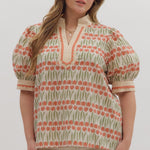 Curvy Tulip Trim Puff Sleeve Blouse – Peach Multi