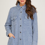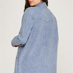 The Denim Babe Jacket is crafted with a long sleeve woven twill fabric for superior durability. In a stylish, dusty blue color, this jacket is sure to become a favorite part of your wardrobe.