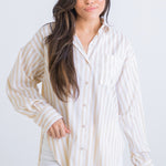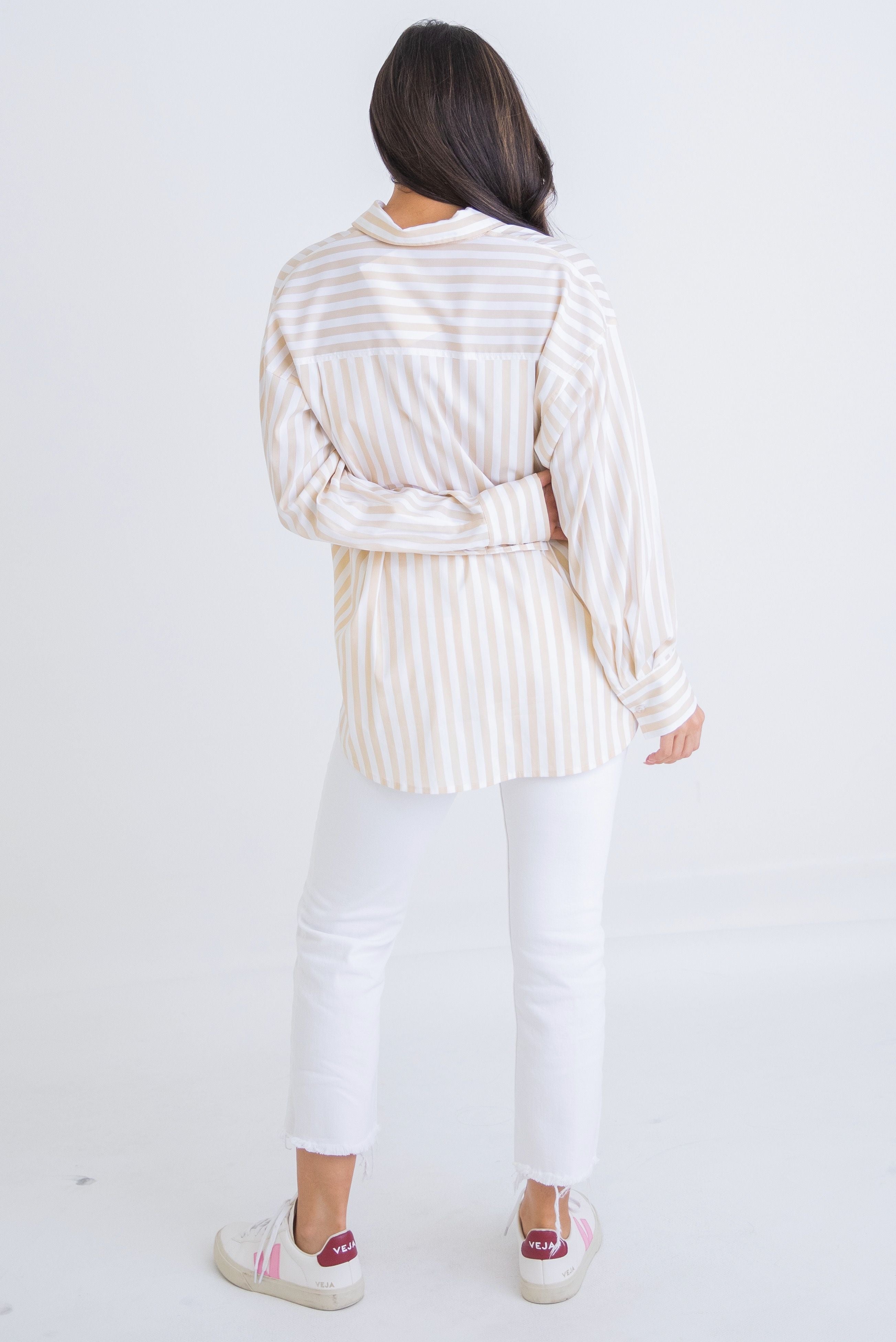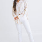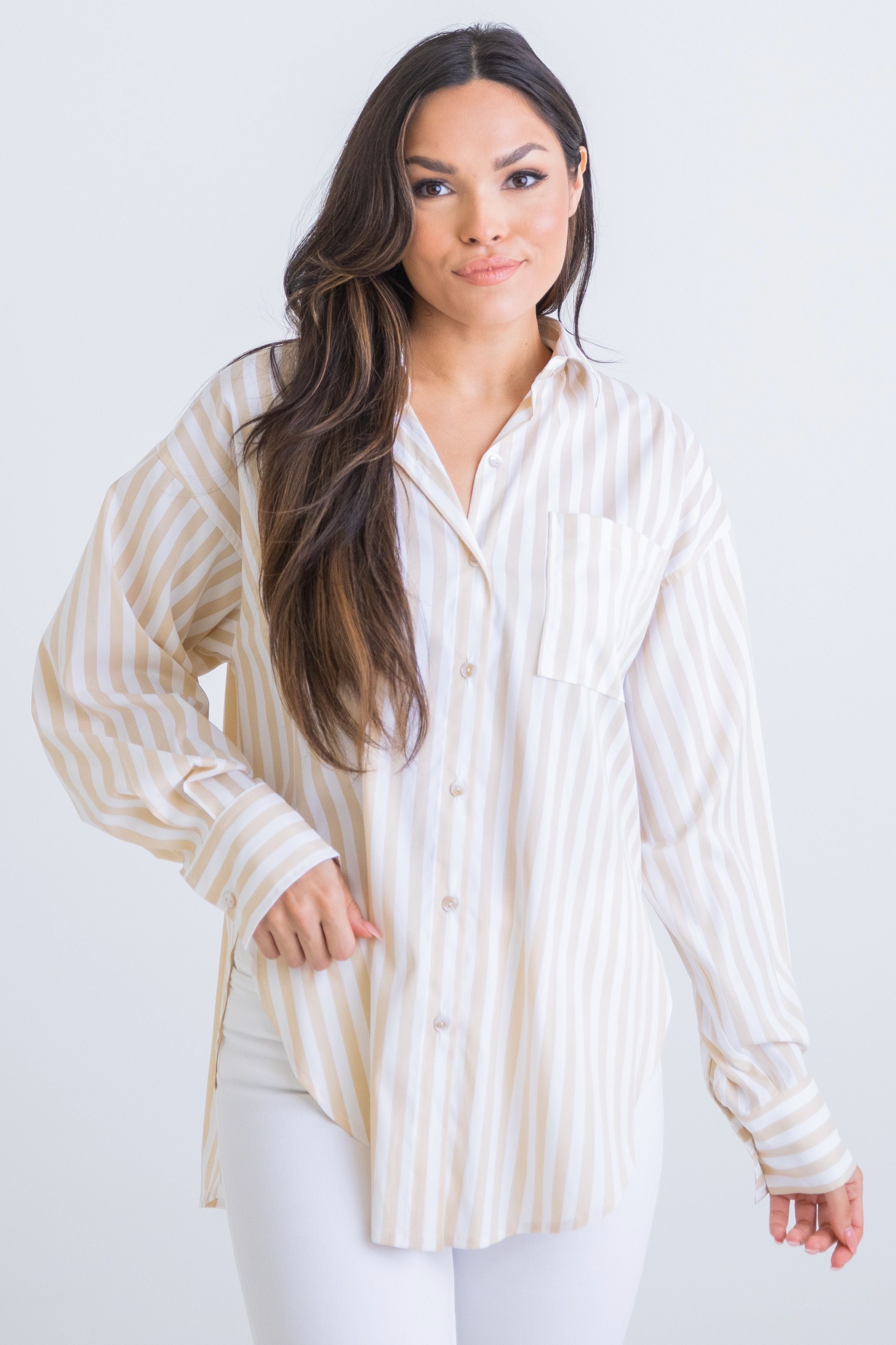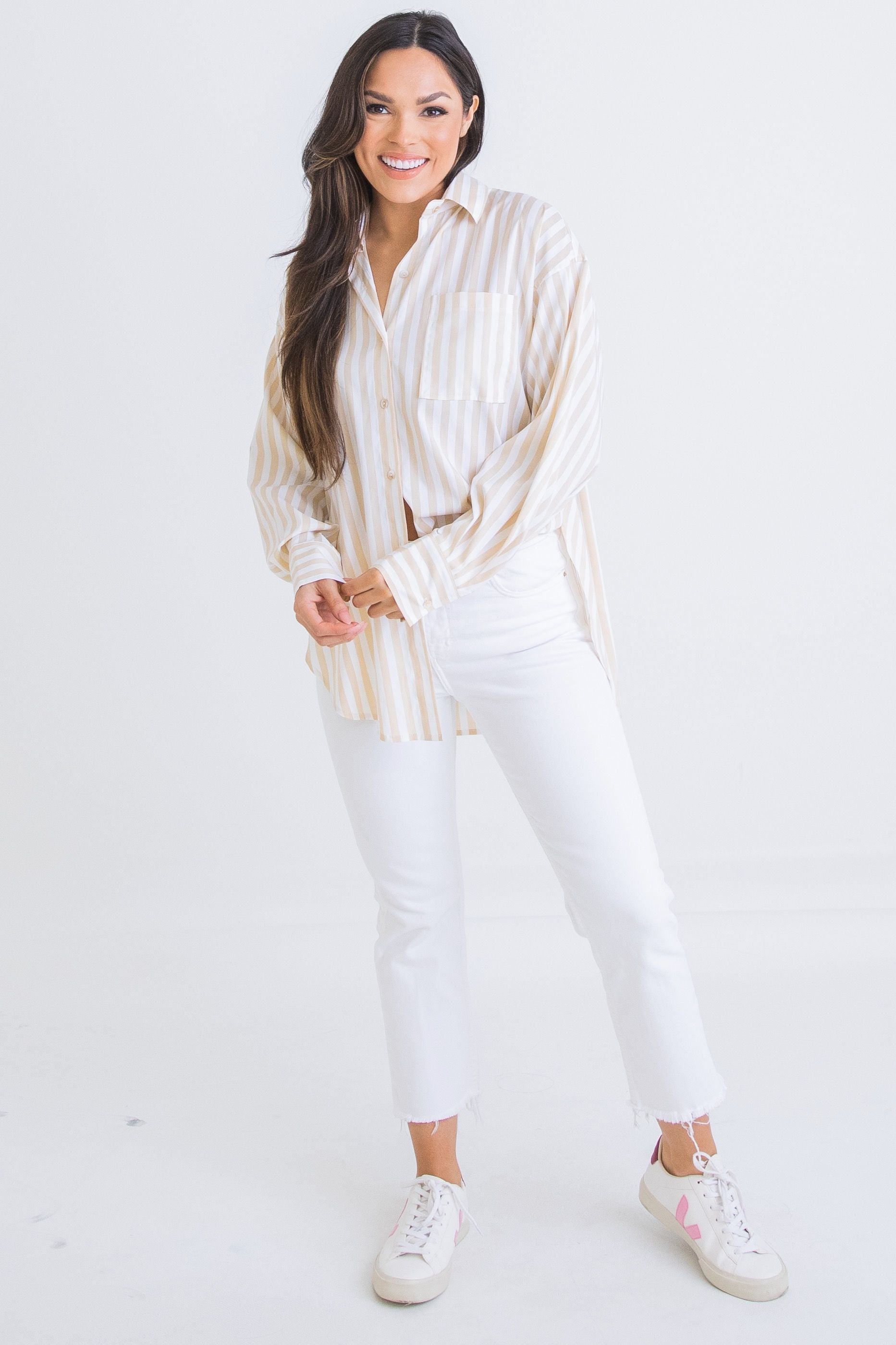 The Diana Top by Karlie is a timeless piece crafted to perfection. Its lightweight fabric, classic stripes, modern button-up design, and flattering fit make this top perfect for any style. Expertly tailored for comfort and ease, the Diana Top is an essential part of any wardrobe. Available in sizes Small-Large