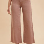 Upgrade your wardrobe with our Dried Rose High Waisted Cropped Pants! Made with stretch denim for a comfortable fit, these pants feature a clean cut hemline and high rise for a flattering silhouette. The wide leg and cropped length add a trendy touch, while the pockets and garment dye provide both style and functionality. Elevate your look with these chic and versatile pants.