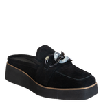 Introducing the black suede, chain platform loafer, Elect--a versatile and lightweight slip-on that effortlessly elevates your style. With its soft suede finish and black hue, these loafers exude luxury and sophistication while offering endless outfit possibilities.