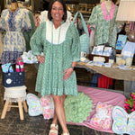 Add a pop of playful charm to your wardrobe with our Emerald Dandelion Printed Dress! Featuring a flattering silhouette and a unique contrasting bodice, this dress is a standout piece for any season. The tie neck string adds a feminine touch, while the dandelion print brings a soft, whimsical vibe to the rich emerald background.