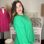 Elevate your winter wardrobe with our Evergreen Elegance Plus Size Crewneck Top. This long-sleeved stunner features a classic round neckline, exposed seams, and a solid hue for timeless style. Crafted from a blend of 95% polyester and 5% spandex, it offers comfort and versatility. Stay chic and cozy in this wardrobe essential designed to complement your curves. Perfect for casual outings or layering for a stylish look. Embrace the season in Evergreen Elegance! 🌲👚✨ #PlusSizeFashion #WinterStyle #GreenCrewneckTop