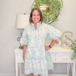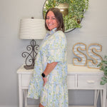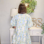 Light, airy, and full of charm—the Floral Breeze Babydoll Dress is the perfect pick for garden parties, church, or sunny strolls downtown. Featuring a soft blue and green floral print, this dress has dreamy puff sleeves with ruffle details and a sweet tie neckline with twisted cord accents. The babydoll silhouette and ruffled hem give it that effortless Southern belle feel we all love!