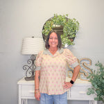 Floral Stripe Accent Puff Sleeve Top – Ecru