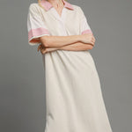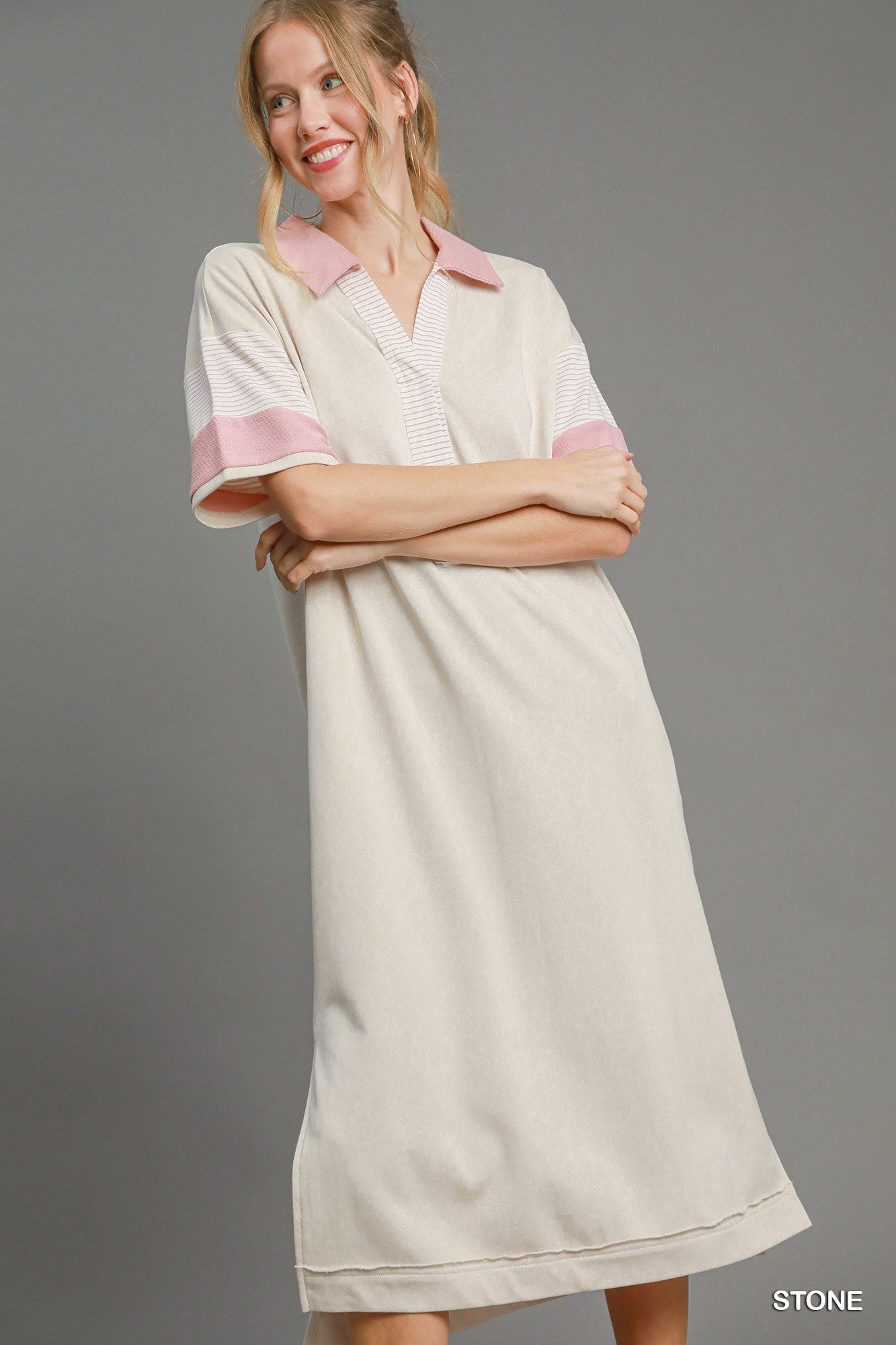 Unleash your chic and comfortable style with our French Terry Midi Dress. Made from a unique blend of stripes and soft French Terry fabric, this dress is perfect for any occasion. The side slit adds a playful touch, while keeping you cool and confident. Take your outfit game to the next level!