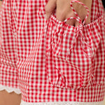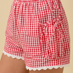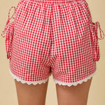 Gingham Shorts With Side Pouch Pocket And Contrasting Eyelet Lace Hem Detail