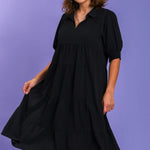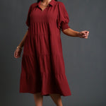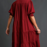 Look sophisticated and stylish in this Graceful Maxi Dress. This collared dress features cuffed 3/4 sleeves and tiers perfect for a relaxed look. Its lightweight material and unlined design make it ideal for any season. Get the ultimate comfort and style in Umgee curvy sizes. In Red and Black.