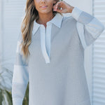 Elevate your casual look with our Gray Color Block Sweatshirt! This oversized top features a unique notched collared neckline and trendy color block details on the sleeves. The raw edge seaming adds a touch of edginess to this comfy and stylish sweatshirt.