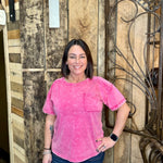 Experience the comfort and style of our Hot Pink Acid Wash Round Neck Tee! With a relaxed fit and unique acid wash finish, each shirt is one-of-a-kind and guarantees to make a statement. Stand out and feel confident in this must-have addition to your wardrobe.