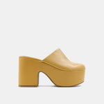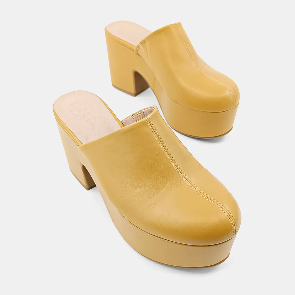 Our ISOLDA clogs take inspiration from '70s styles. This pair is made from buttery soft faux leather and is set on a chunky wedge for a streamlined vibe. Wear them with anything from denim to dresses. Available in this super versatile camel color.