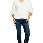 Soft, elegant, and endlessly versatile, this ivory dolman sweater is a must-have for any season. Designed with a flattering V-neckline and relaxed dolman sleeves, it drapes beautifully while still feeling lightweight and breathable. The curved hem adds a polished finish that makes it perfect for wearing tucked, half-tucked, or loose.