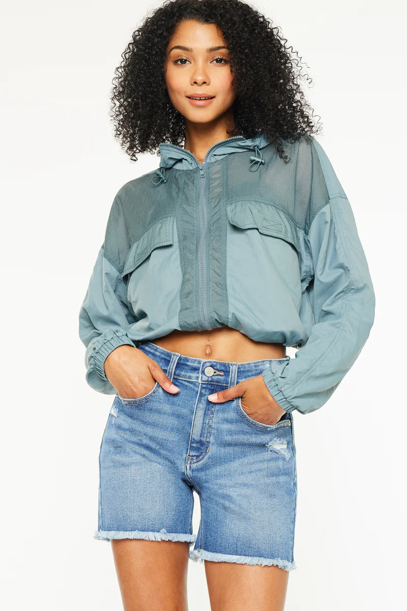 Elevate your summer style with our Karen Denim Shorts! Boasting a high rise and comfortable stretch, these medium wash shorts feature a trendy frayed hem and convenient zipper fly. Perfect for any occasion with a rise of 11 inches and inseam of 4.5 inches (size M).