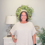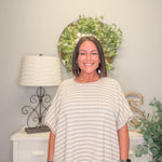 Comfy meets cute in the Lavender Breeze Knit Top! This oversized boxy tee features a soft ivory and lavender stripe pattern on a cozy textured knit. The relaxed drop-shoulder fit and easy silhouette make it perfect for everyday wear—whether you’re lounging, running errands, or heading to brunch with the girls.