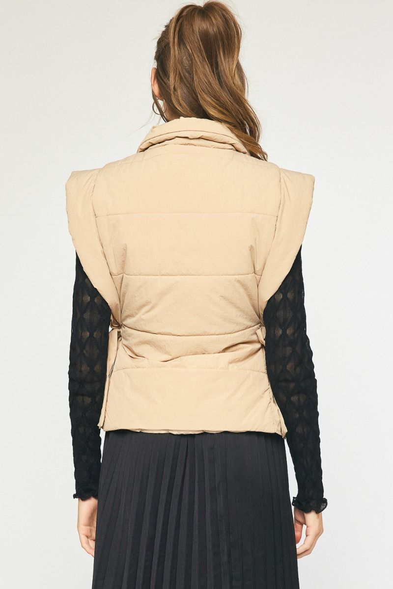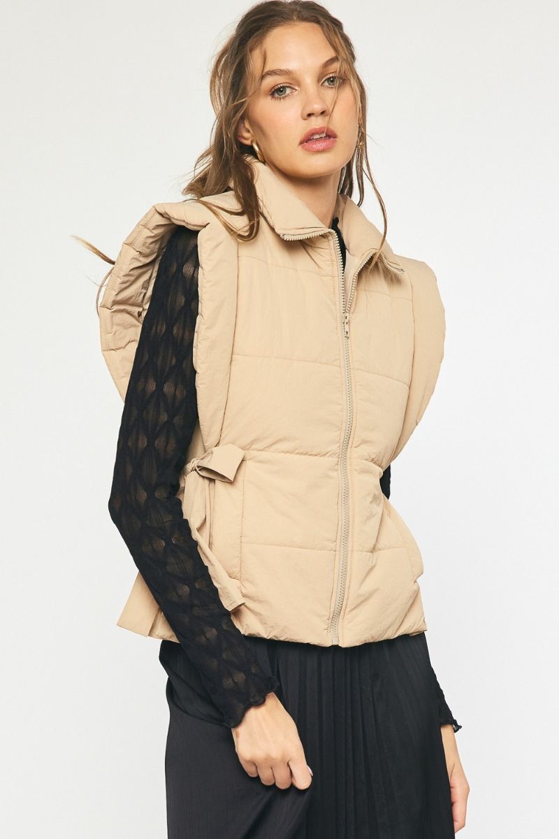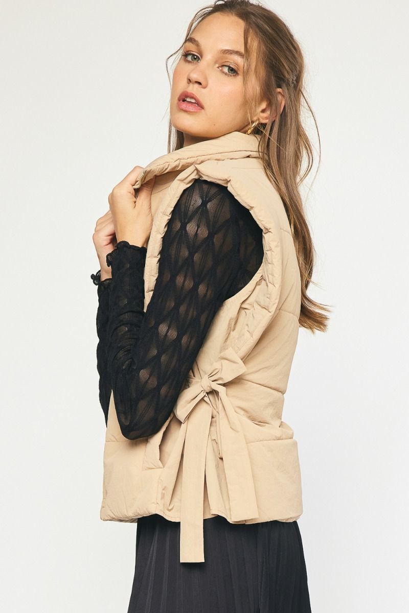 Stay warm and comfortable with the Light & Cozy Vestique. Its solid quilted construction is lined and non-sheer, making it a great choice for outdoor activities. It features a classic collar, self-tie detail at the side, and pockets for extra convenience. Made of lightweight fabric, this vest is sure to keep you cozy.