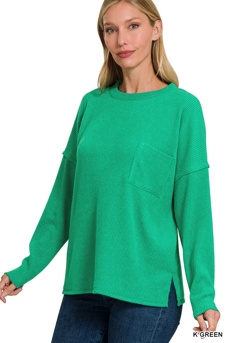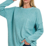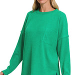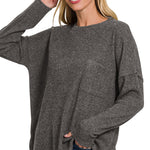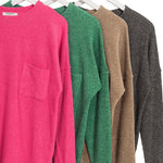 Our LuxKnit Sweater is an essential for the colder months. It features a ribbed brushed melange hacci material and a convenient pocket on the front for easy storage. The back patch adds a stylish touch, while the range of colors and sizes ensures you find the perfect fit.