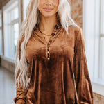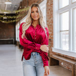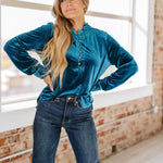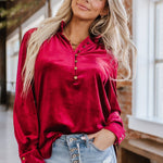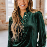 Look amazing in the Marjorie Long Sleeve Velvet Blouse! Made of luxurious velvet fabric, this stunning blouse features a button neck and long sleeves for an elegant look. Perfect for any occasion, you'll be sure to stand out in this unforgettable blouse - make a statement today! *