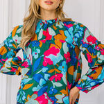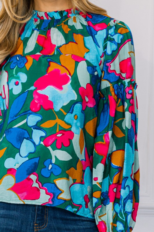 Oddi's Meg's Favorite Blouse offers a unique and stylish option for any occasion. It features a floral ruffle neckline baby doll blouse with a ruffle detail long sleeve with a button cuff and back neck button. Available in sizes Small-Large.