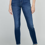 Experience all-day comfort and movement with our Mid Rise Crop Skinny jeans. With stretch that hugs your curves, this slimming dark wash style is a must-have for your wardrobe. Say hello to confidence and goodbye to discomfort!