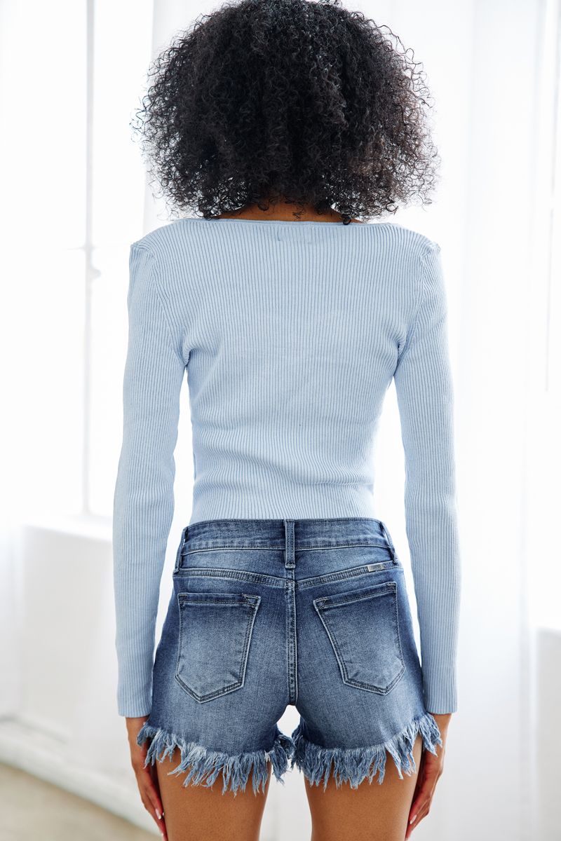 Look and feel your best in our Flexi Shorts. These mid-rise Kancan shorts are made with a blend of cotton, rayon, polyester, and spandex, ensuring they move with you. With a zip fly, five pockets, and a frayed hem, they offer both style and practicality. Perfect for any summer day!