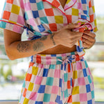 These Multicolored Checker Wholesale Pajamas are here to make lounging extra fun! Featuring a bold, playful checker pattern in a rainbow of colors, these PJs are practically begging for a cozy night in. Perfect for sleepovers, lazy Sundays, or snapping cute pics for the ‘gram, they bring all the personality with none of the effort. Soft, stylish, and full of color – your customers will feel like total cozy queens. Add these to your boutique lineup and watch them fly off the shelves!