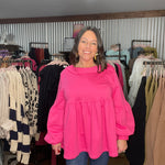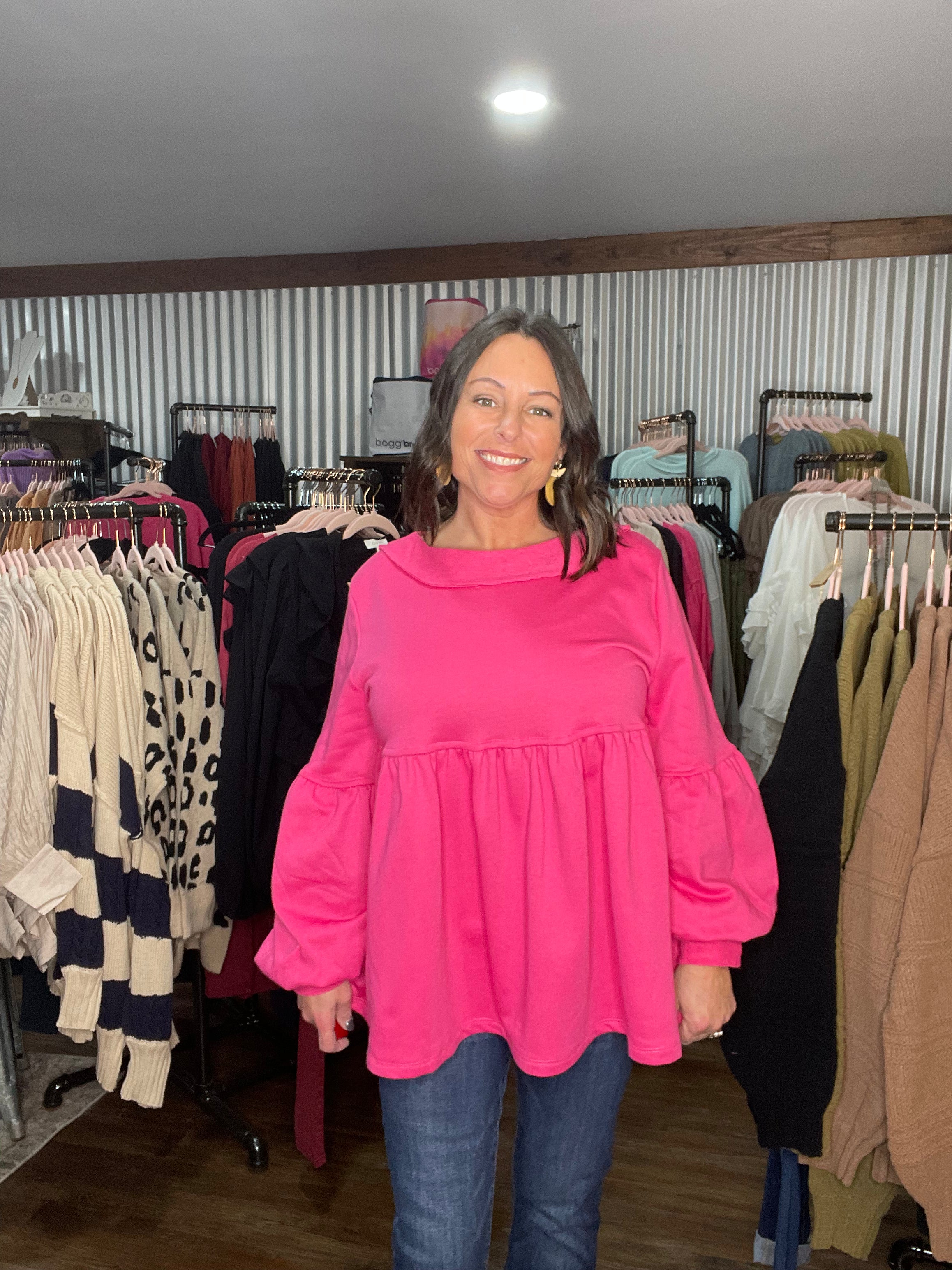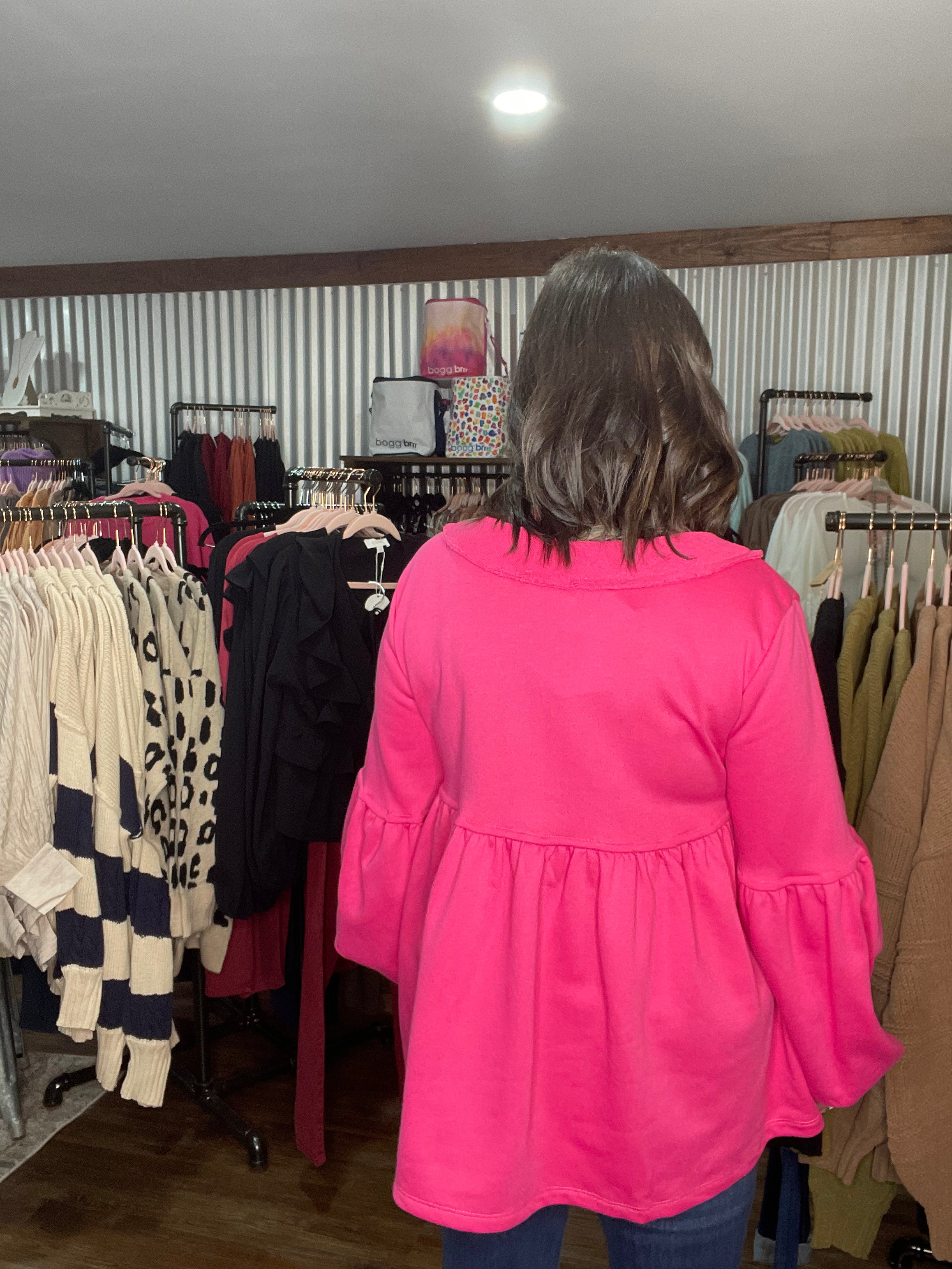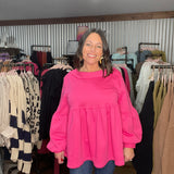 Discover the perfect blend of comfort and style with our Pink Bliss French Terry Bubble Sleeve Top. This vibrant hot pink top is crafted from high-quality French Terry fabric, ensuring a cozy feel against your skin. The bubbled sleeves add a playful and on-trend touch, making this top a statement piece for any occasion. Elevate your casual chic look with the Pink Bliss Top – a must-have addition to your wardrobe. Shop now for a pop of color and fashionable flair! 🌺👚 #PinkBlissTop #BubbleSleeveFashion #FrenchTerryStyle