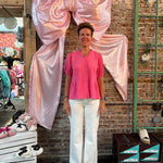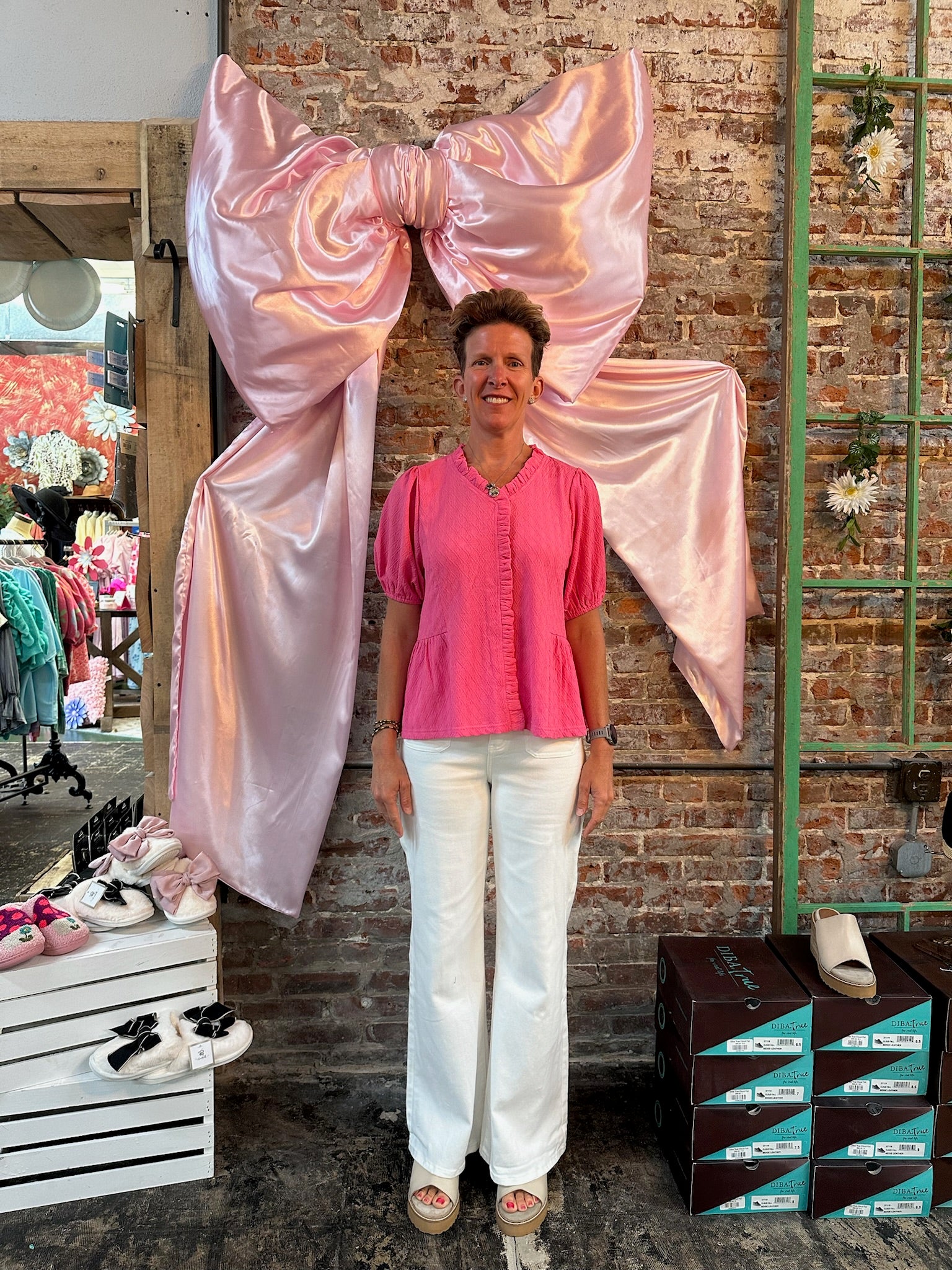 Say hello to your new summer favorite! Our Camilla Ruffle Peplum Top is the perfect mix of cute and comfortable. Featuring a textured hot pink fabric, a flattering v-neckline with delicate ruffle trim, and a flowy peplum hem, this top is made to move with you. The puff sleeves with elastic cuffs add just the right amount of charm for a look that’s both playful and polished.
