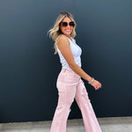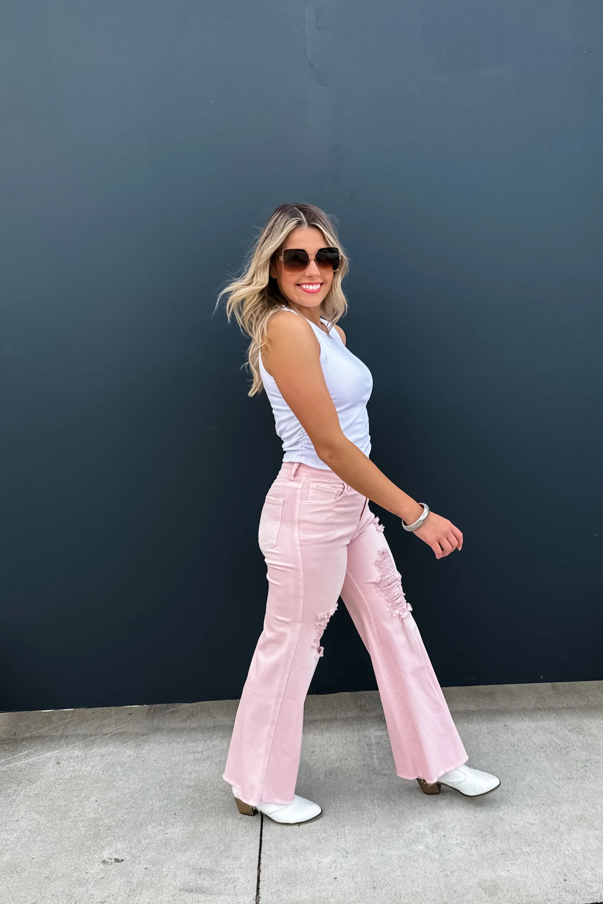These Pink Distressed Jeans will quickly become your new favorite! The premium quality denim is both stretchy and form-fitting, with just the right amount of distressing on the knees. The relaxed Dad jean style and high rise waist provide a comfortable and fashionable fit. Prepare to fall in love with these jeans!
