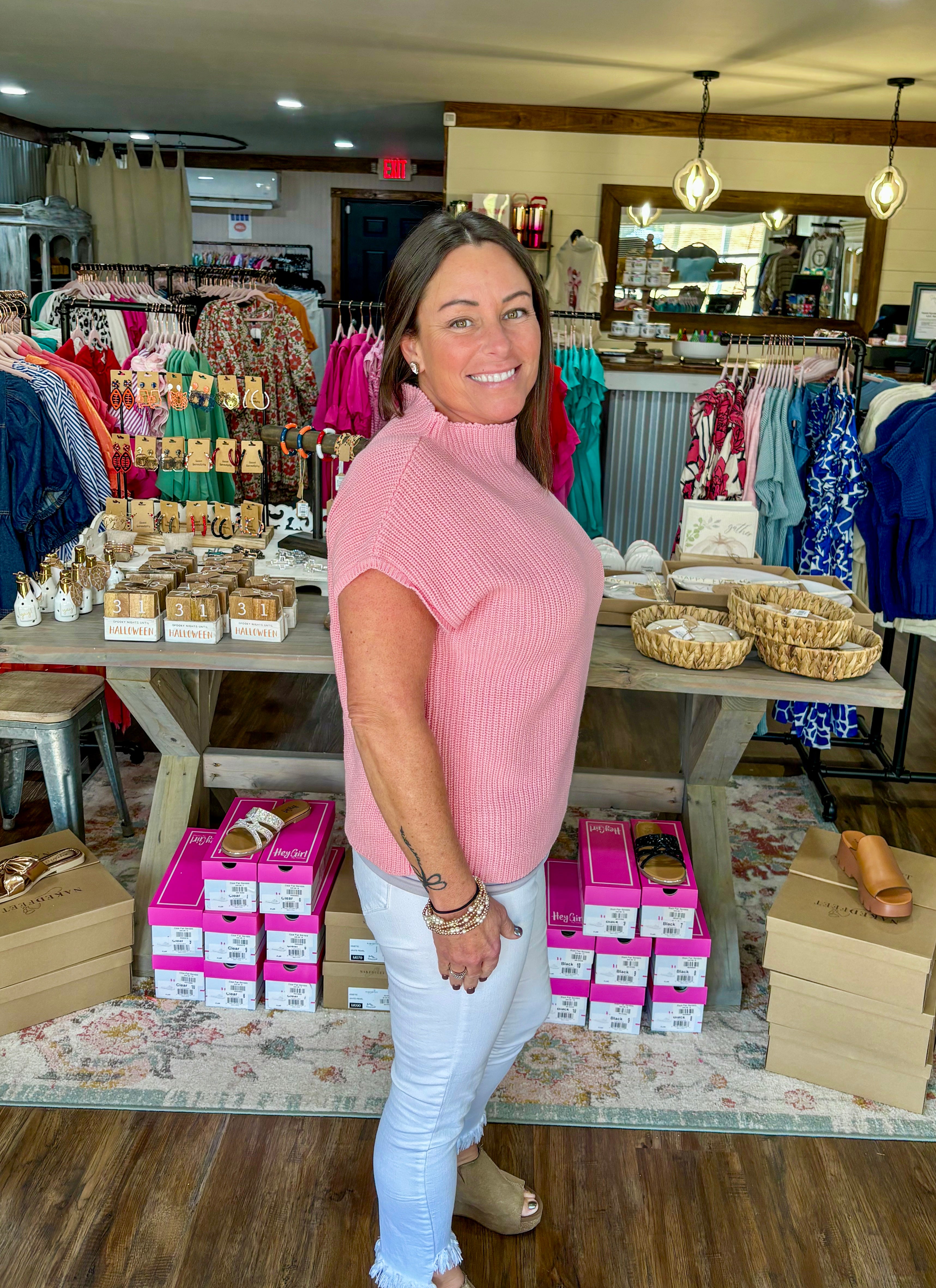 Elevate your sweater game with our Pink Mock Neck Sweater! Made with the best quality and low gauge heavyweight material, this sweater is sure to keep you warm and stylish. The mock neck and dropped shoulder short sleeve add a unique touch. Available in sizes Small-Large, with a true to size fit.