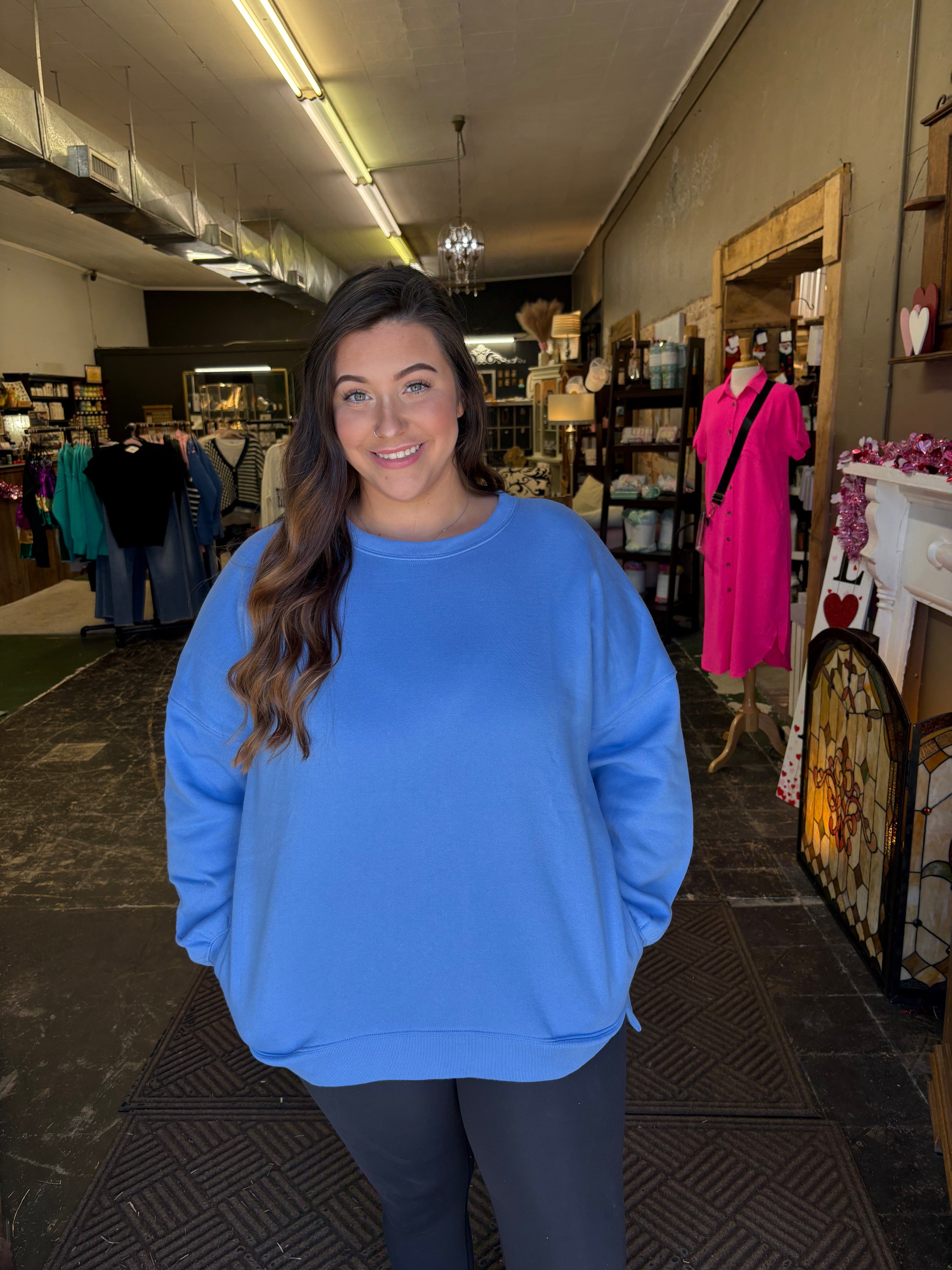 Plus Fleece Hi-Low Boyfriend Sweatshirt with Pockets- Cornflower Blue