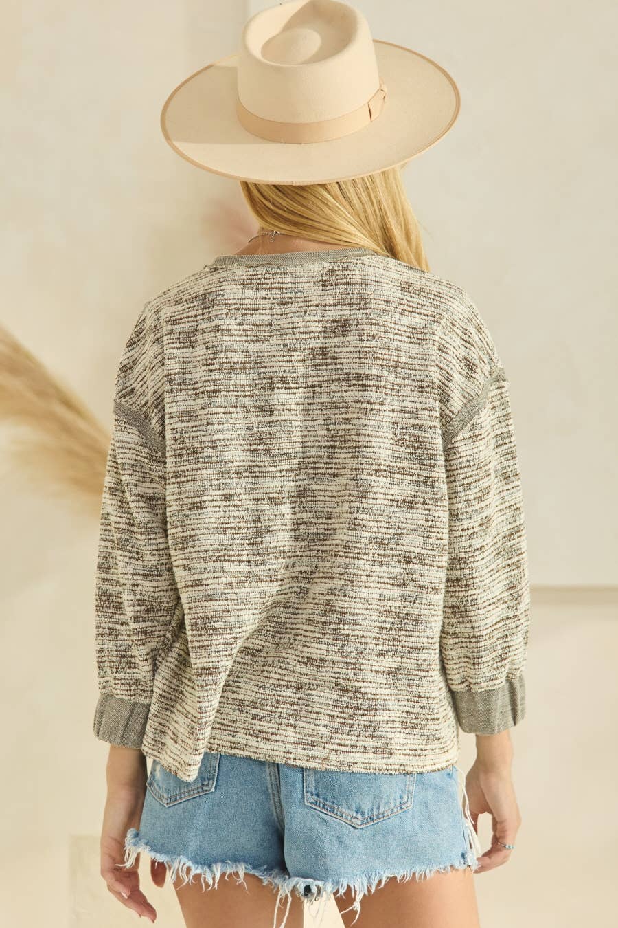 Plus Heathered Jacquard Fabric Pullover Sweater