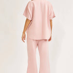 ntroducing the perfect travel set designed for comfort and style on your adventures! The waterfall poncho relaxed top paired with slight bell flare pants creates the most flattering silhouettes. The lightweight fabric cascades elegantly, offering a chic set that's PERFECT for any weather. This fabric is wrinkle-resistant, making them easy to toss in your suitcase without worrying so much! This fun travel set combines style with practicality, making it a go to choice for anyone looking to look effortlessly chic while feeling comfortable!
