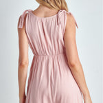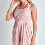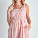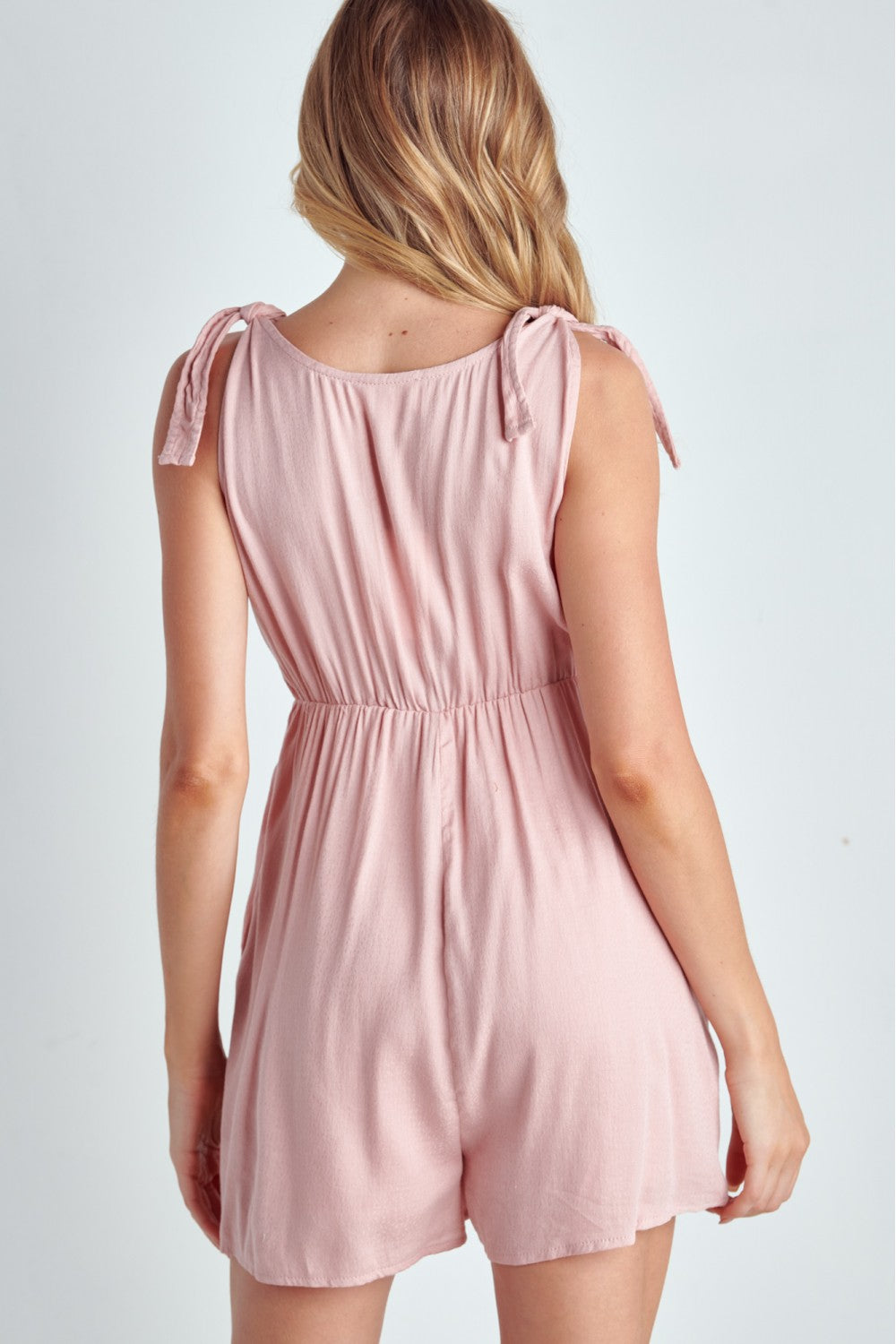 Stand out in style in the Shoulder Chic Romper from Heyson. This casual textured romper is made of a lightweight blend of 60% cotton and 40% rayon, making it breathable and comfortable for any event. It features a shoulder tie and pockets, and is available in this really cute dusty pink color, in sizes small to large. Look chic and be comfortable in the Shoulder Chic Romper.