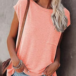 Nothing beats the comfort and convenience of a relaxed, slouchy top with a handy pocket on the side. Try our Batwing Cap Sleeve design for a chic yet casual look.